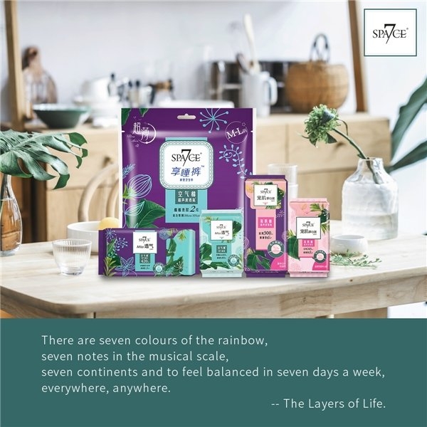 而作为恒安集团旗下国内高端女性卫生巾品牌,Space7具有追寻平衡的生活态度,倡导的品牌文化是鼓励女性追求自己的平衡生活。Space7简约北欧自然风,清新自然的品牌属性,有着与综艺《理想家》相一致的“气质”。