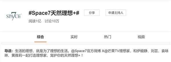 此次Space7与《理想家》合作,主话题#Space7天然理想+#,与《理想家》同音,“天然理想+”也将品牌喻比为“天然理想家”,想给消费者天然的无限美好,在社交传播上,微博话题阅读量达1亿+,讨论超过10万。