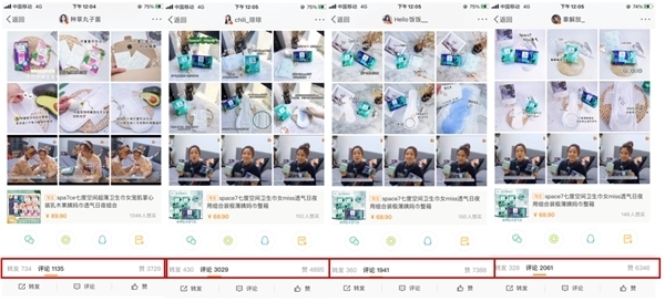 同时,结合外围传播,将综艺《理想家》具有标识的元素、热点话题、艺人形象都融入到Space7的全网传播中,借势综艺《理想家》的热度,将产品植入带来的流量引流到站外,通过微博KOL布局种草推广,影响目标群体购买决策,进一步提升Space7的品牌知名度与好感度,截止当前,微博阅读超9000万,互动量达26万。并结合《理想家》在小红书平台,通过多类型KOL种草Space7#天然护肤卫生巾#,沉淀“宠肌掌心装”和“MISS透气”产品口碑,截止当前,小红书笔记互动量超2500。还通过烈儿宝贝等头部主播直播进行带货,让受众了解Space7产品的功能特性,提升消费者对品牌的认知和好感,形成消费者与Space7的强互动,促进品牌销售转化。