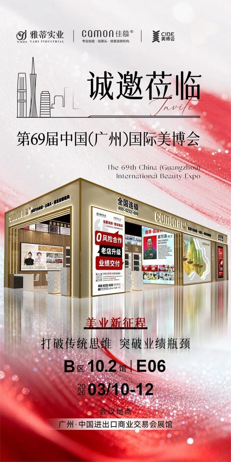 深耕美业21载的雅蒂公司,将重磅亮相广州美博会!携旗下三大王牌——佳慕连锁、凯顿VDS美容仪、平德堂理疗,强势登陆三展馆,一站式解锁美业、大健康黄金新机遇,这场美业盛会蕴藏全新财富风口,雅蒂邀您亲临现场,共探可持续盈利的新征程!
