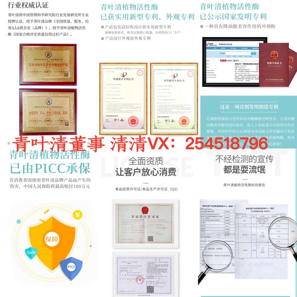 青叶清品牌全面资质、PICC全方位承保、中国管理科学研究院行业发展研究所权威授牌还有三项国家专利!青叶清对每一个消费者负责,安全与质量让您放心!